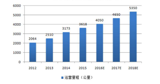 2012-2018年全国城市轨道交通历年运营里程变化图(资料图)
