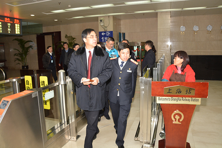 日前,三分院(铁检分院)副检察长高孝义到铁路上海站、地铁上海站检查“两会”及春运维稳安保准备工作。