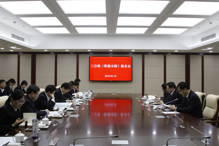 1月15日,三分院(铁检分院)召开院务会。陆建强检察长总结了前一阶段工作情况,并就做好当前工作提出要求。高孝义副检察长通报了党组“三严三实”专题民主生活会情况。分院领导班子成员和各部门负责人参加。