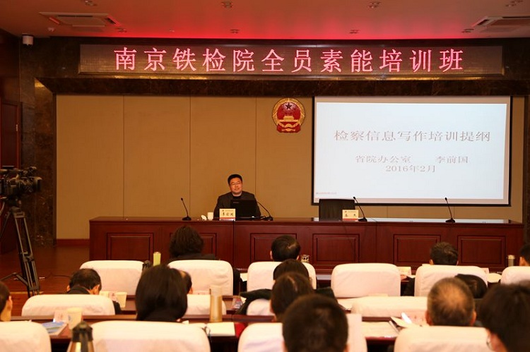 为积极适应跨行政区划检察院改革需要,加强队伍能力建设,提升干警综合素能, 2月24日至26日,南京铁检院在江苏省检察官学院举办全员素能培训班。邀请江苏省院、上海市检察三分院、无锡市院、南京市科委等单位有关领导和业务骨干就“公诉案件证据审查判断”、“民行案件的审查方法”、“智慧反贪的策略与战法”、“南京市知识产权战略及保护状况”等内容进行全方位的授课。该院邱友根检察长对2016年工作进行动员部署。