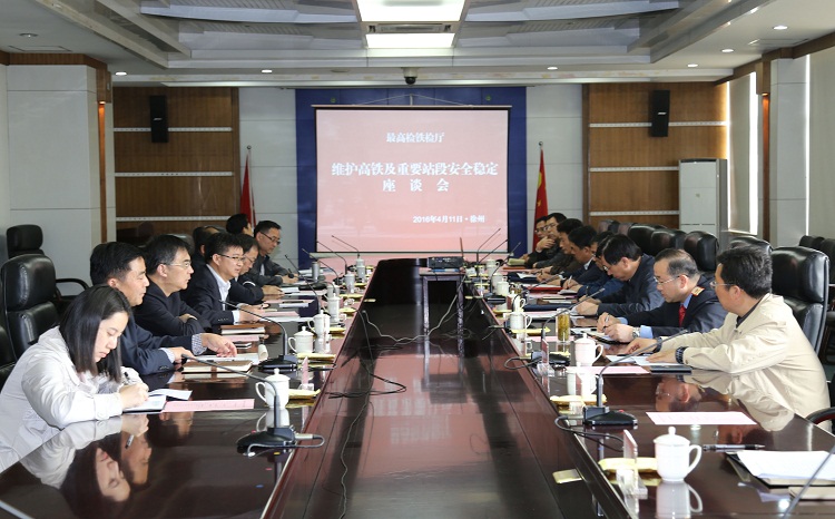 4月11日,高检院铁检厅徐向春厅长一行到徐州铁路地区调研维护高铁及重要站段安全稳定工作,专门听取了徐州铁路办事处和徐州地区8个重要铁路站段维护高铁及重要站段安全稳定方面工作情况、存在的困难问题及相关意见建议,充分肯定了各铁路单位在维护安全稳定、支持铁检机关履行职能等方面的工作成效,表示将认真梳理铁路单位意见建议,结合铁检职能,精心组织开展维护高铁及重要站段安全、打击盗窃和制售假冒列车配件等专项活动,服务铁路改革发展。