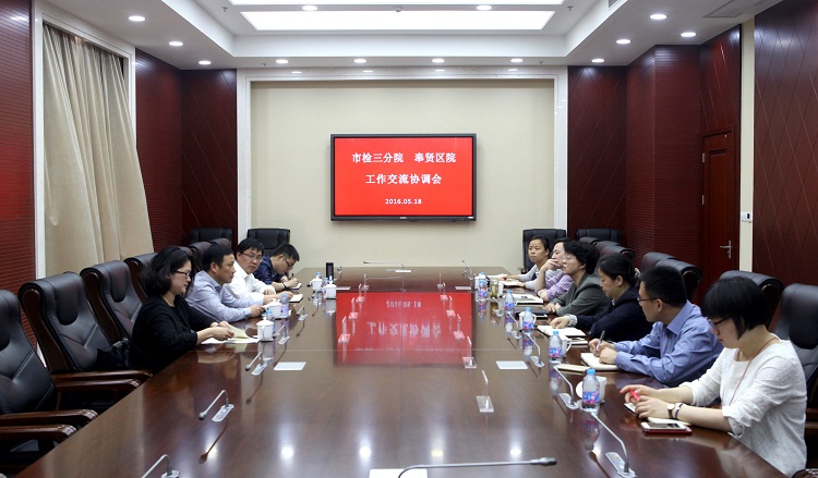 日,奉贤区院副检察长俞德明一行到三分院(铁检分院)交流工作,李文副巡视员参加。