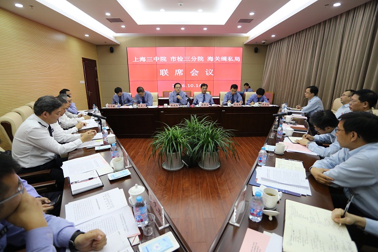 第三分院、上海海关缉私局召开联席会议,上海市高级人民法院党组成员、上海市第三中级人民法院(知产法院、铁路中院)党组书记、院长王秋良,上海市第三中级人民法院(铁路中院)副院长璩富荣;草榴社區