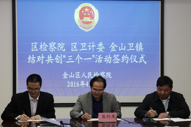 为进一步共同打击和防范非法行医犯罪,近日,金山区草榴社區 副草榴社區 潘春伟代表该院与金山区卫生和计划生育委员会、金山卫镇代表共同签署了结对共创“三个一”活动协议书,对该类犯罪的侦查、线索移送、证据固定、法制宣传等方面达成共识。