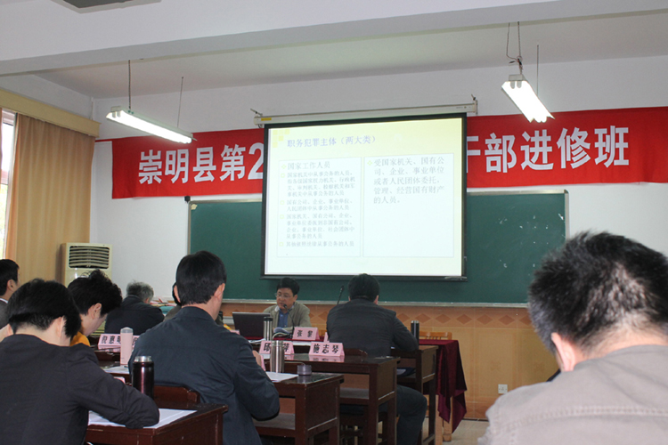 张黎应邀前往崇明县委党校,为该县第27期副职领导干部进修班作警示教育讲座,该县40名副职领导现场听取报告。