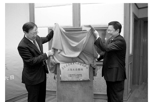 阮祝军(右)与时任上海大众党委副书记、纪委书记张志勇为大众观护基地揭牌 毛永兴/摄