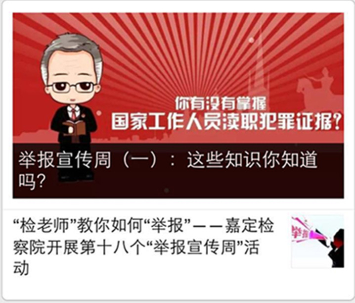 值得一提的是,此次该院还将依托新成立的“嘉检法律服务新媒体矩阵”,在“嘉定发布”、“嘉定新城网”等多个在嘉定区具有一定影响力的微信公众号上同步宣传“举报宣传周”活动,扩大“举报宣传周”活动影响力。
