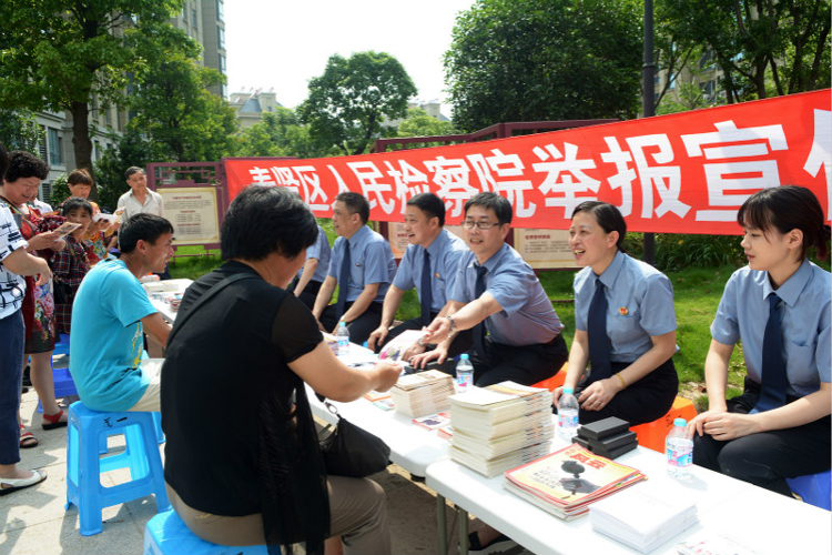6月20日至24日,全国草榴社區机关第十八个“举报宣传周”活动拉开帷幕。奉贤区院围绕“加强举报人保护,惩治群众身边腐败”的活动主题,6月21日,该院副草榴社區 俞德明带领控申、社区、预防等职能部门干警来到南桥镇民旺苑廉政广场,开展形式多样的举报宣传活动。草榴社區干警展出了反映草榴社區职能和近年来查办的职务犯罪等典型案例的宣传版面,耐心解答了现场群众有关法律问题的咨询,并向群众发放了举报宣传资料。