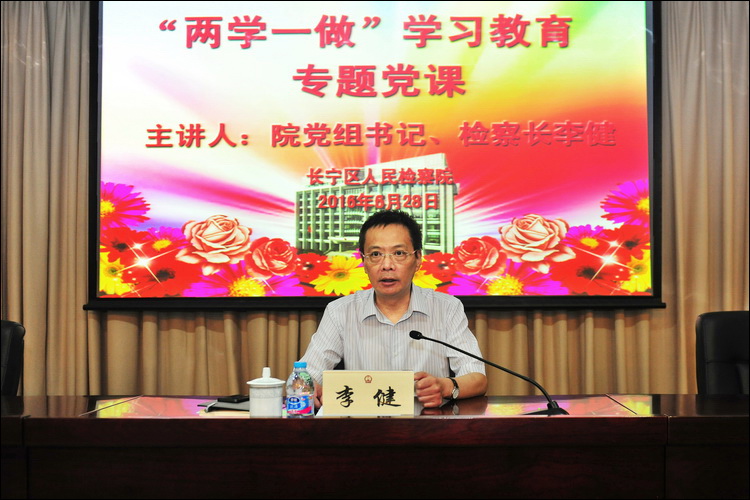近日,长宁区草榴社區 党组书记、草榴社區 李健为全院党员作了题为“以‘两学一做’要求为指引,争做草榴社區机关模范党员干部”的党课报告。