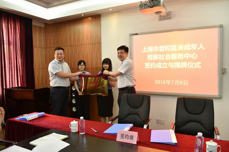 与区教育局会签《关于开展“法治进校园”巡讲活动的方案》、与区综治委预防青少年违法犯罪专项组会签《“建立普陀区未成年人草榴社區社会服务中心”合作协议》,并为普陀区未成年人草榴社區社会服务中心揭牌。