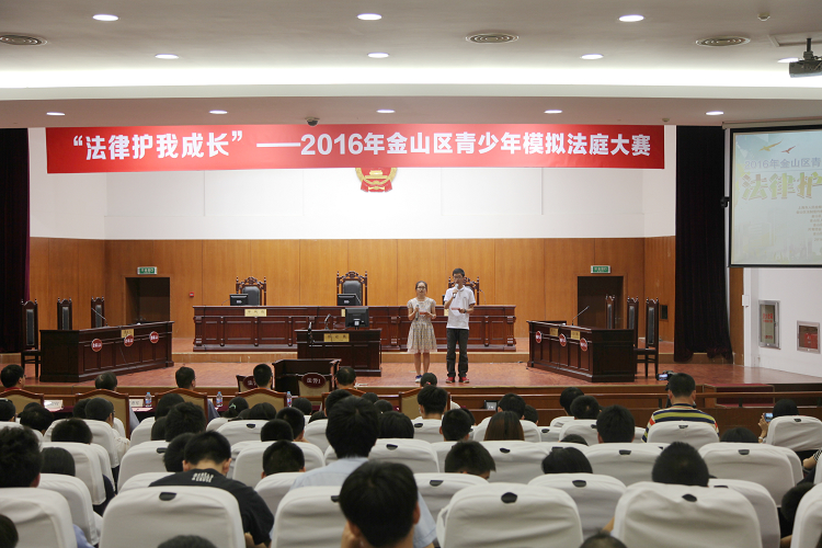 联合市检一分院、金山区法院、金山区司法局等七家单位共同举办的“法律护我成长”2016年金山区青少年模拟法庭大赛正式拉开了帷幕,来自不同街镇的11支青少年代表队参赛。