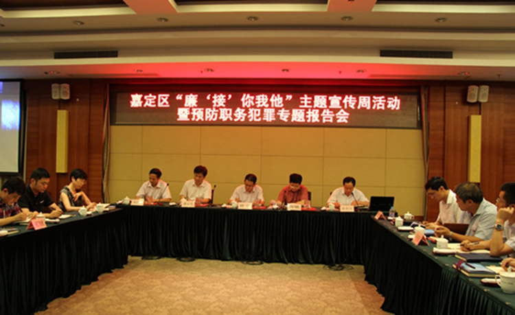 预防部门与区级机关党工委、区法宣办连续第四年联合举办“廉‘接’你我他”主题宣传周活动。会上总结了嘉定学习宣传《上海市预防职务犯罪工作若干规定》的专项活动,并表彰了一批全区学习宣传的先进集体、先进个人。