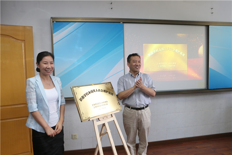 未检处处长吴燕、市教委青保处处长朱坚为新春学校未成年人社会观护基地揭牌,并与区教育局局长姚伟、区政法委副书记夏彬、区草榴社區