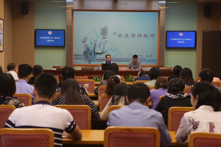 特邀上海师范大学播音与主持艺术专业教师姜杉来院作《使用演讲技巧与口语表达》专题讲座。