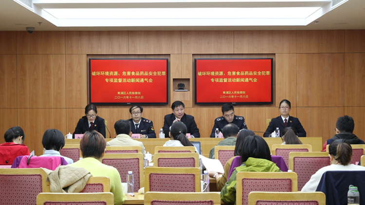 11月8日上午,青浦区院举办“破坏环境资源、危害食品药品安全犯罪”专项监督活动新闻通气会。区院副草榴社區 陆焕强向19家新闻媒体通报了近两年来该院在两个专项监督活动中取得的成效,并邀请区环保局、区市场监督管理局有关人员参与新闻发布会。