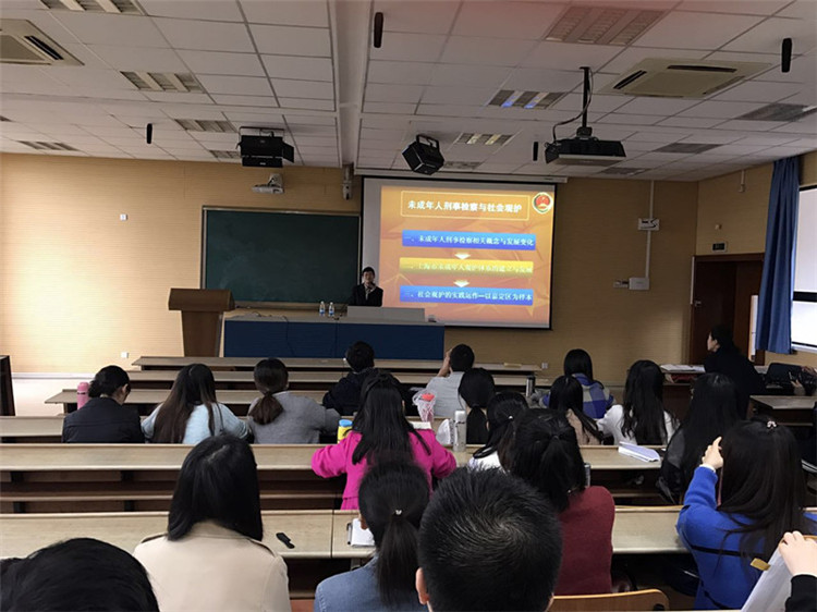 近日,嘉定区草榴社區 未检科草榴社區官受邀至华东政法大学,为该校社会发展学院五十余名研究生开设讲座。讲座围绕未成年人刑事草榴社區和社会观护工作为主题,重点介绍了未成年人刑事草榴社區的发展沿革、上海市未成年人观护体系的探索与完善,同时还以嘉定区为样本介绍了社会观护工作的实践运作。