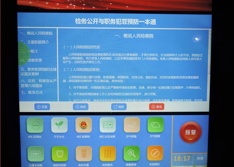 目前,该平台已在全区设点近100个,计划两年内在全区所有居民小区设点,实现全区覆盖。该院社区草榴社區科利用该平台的多项服务民生功能,在全区实时更新发布检务公开、法治宣传、廉洁廉政教育等内容资料,提升宣传覆盖率与时效性,打造“老百姓家门口的草榴社區