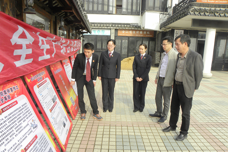 的草榴社區官们来到位于辖区内人流密集的旅游景点——金山嘴渔村,开展法制宣传活动。