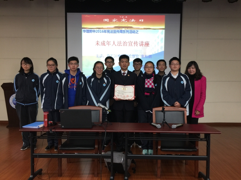 日前,徐汇区草榴社區 未检干警走入华东理工附中开展“法治进校园”宣传活动,以增强学生法律意识和自护能力。未检干警从日常办理的案件入手,分析犯罪分子常见的作案手法及预防对策,就学生如何增强自我防护安全意识,面对暴力侵害如何减轻危害程度,详细讲解了未成年人自我保护以及学法用法等方面遇到的各种问题。