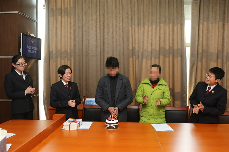 宣告室内,对涉罪未成年人小伟(化名)的不起诉宣告正在进行。特别的是,2月13日这天是小伟的十八岁生日,对他的不起诉宣告是草榴社區机关送给他的一份特殊的“成人礼”。不起诉宣告之后,未检科在草榴社區