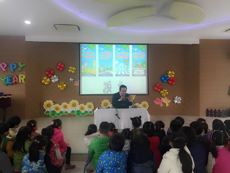 未检科科长郑翼来到大宁国际第二幼儿园开展幼儿交通安全教育活动。针对幼儿活泼、好动、好奇、好问的特点,他精心准备了“路儿宽宽危险多遵守交规听我说”的主题讲座,通过动画人物、卡通视频等通俗易懂的方式,向孩子们生动讲述了如何根据红绿灯安全过马路、常见交通标志是何义、坐车时有哪些注意事项等基本的交通安全知识。原本生涩的法规,经过他的改编,立马生动活泼起来。