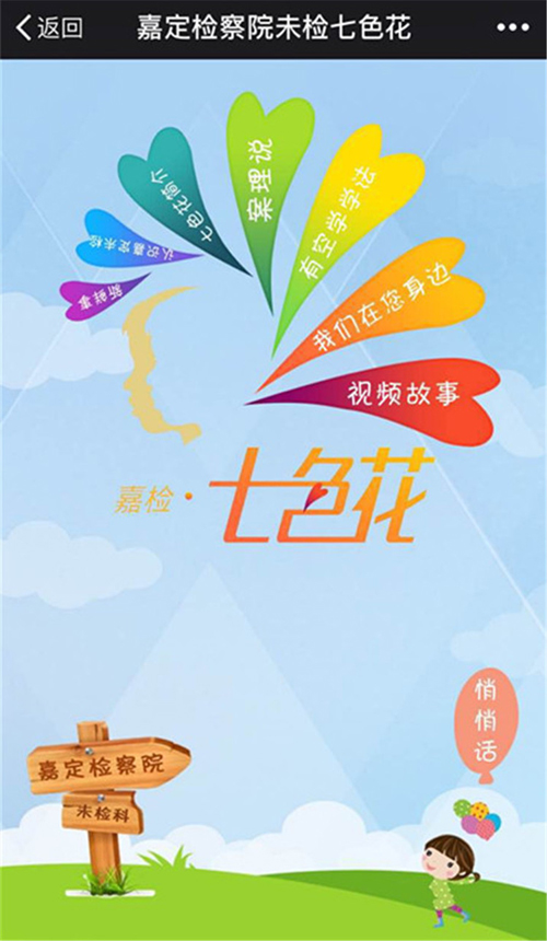 未检科开设了嘉检“七色花”微官网,由未检干警维护,专门为未成年人释法说理、解疑答惑。3月1日,嘉检“七色花”微官网正式上线。