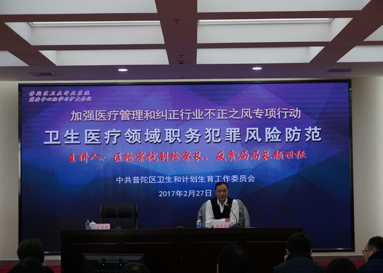 近日,普陀区草榴社區 副草榴社區 颜世征应邀为区卫计委党政班子领导及系统各单位200余名领导班子、关键岗位人员作《卫生医疗领域职务犯罪风险防范》的廉政报告。