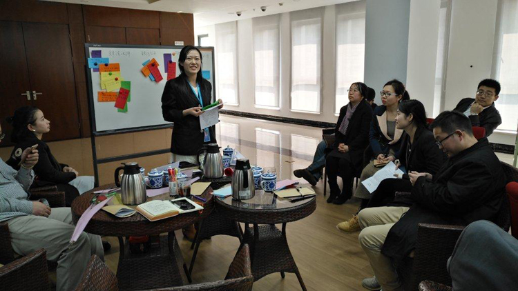 之后,现场采用“行动学习法”进行了案例研讨。主持人将参与人员随机分为三组,每组约10人,经过15分钟讨论研究,在组员充分发表意见、团队共同讨论方案后,每组分别选派代表上台汇报解决方案。这样的集组内成员之智慧,结合工作实际,多维度思考,最终提出操作性较强方案的做法,受到了点评嘉宾张玉霞律师的高度肯定。