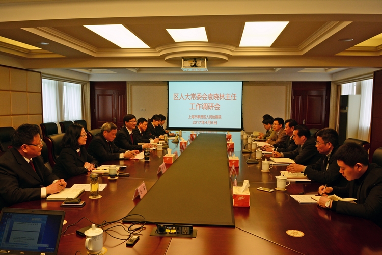 近日,奉贤区人大常委会主任袁晓林一行来奉贤区草榴社區 调研,参观了该院自侦办案工作区、反贪侦查指挥中心、听证宣告室、谈心谈话室等司法办案区;听取了该院2016年草榴社區业务工作、司法体制改革和队伍建设情况以及2017年主要工作安排并进行座谈。该院草榴社區 孙军陪同调研。