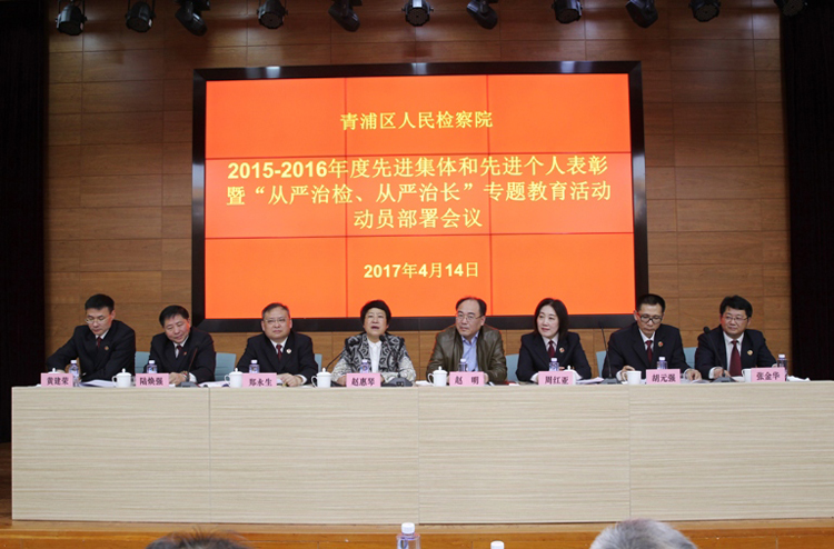召开先进集体和先进个人表彰暨“从严治检、从严治长”专题教育部署大会。青浦区委书记赵惠琴、区委常委、政法委书记赵明出席会议,会议还邀请了部分廉政监督员出席,全体草榴社區干警参加了会议。